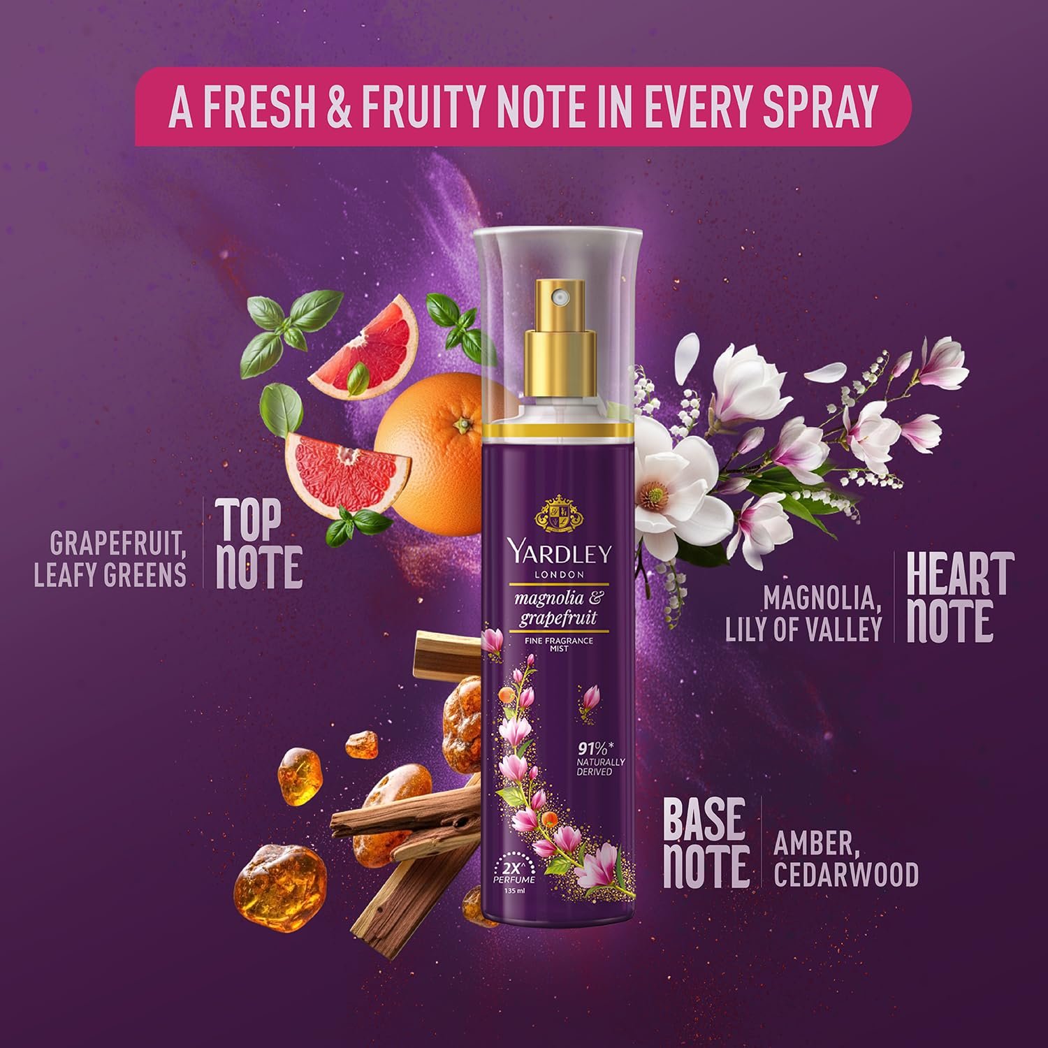 Yardley London Fine Fragrance Mist – Magnolia & Grapefruit (135 ml)