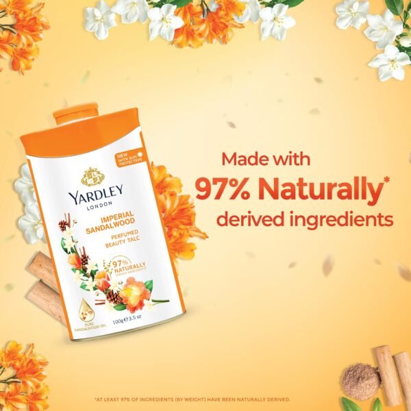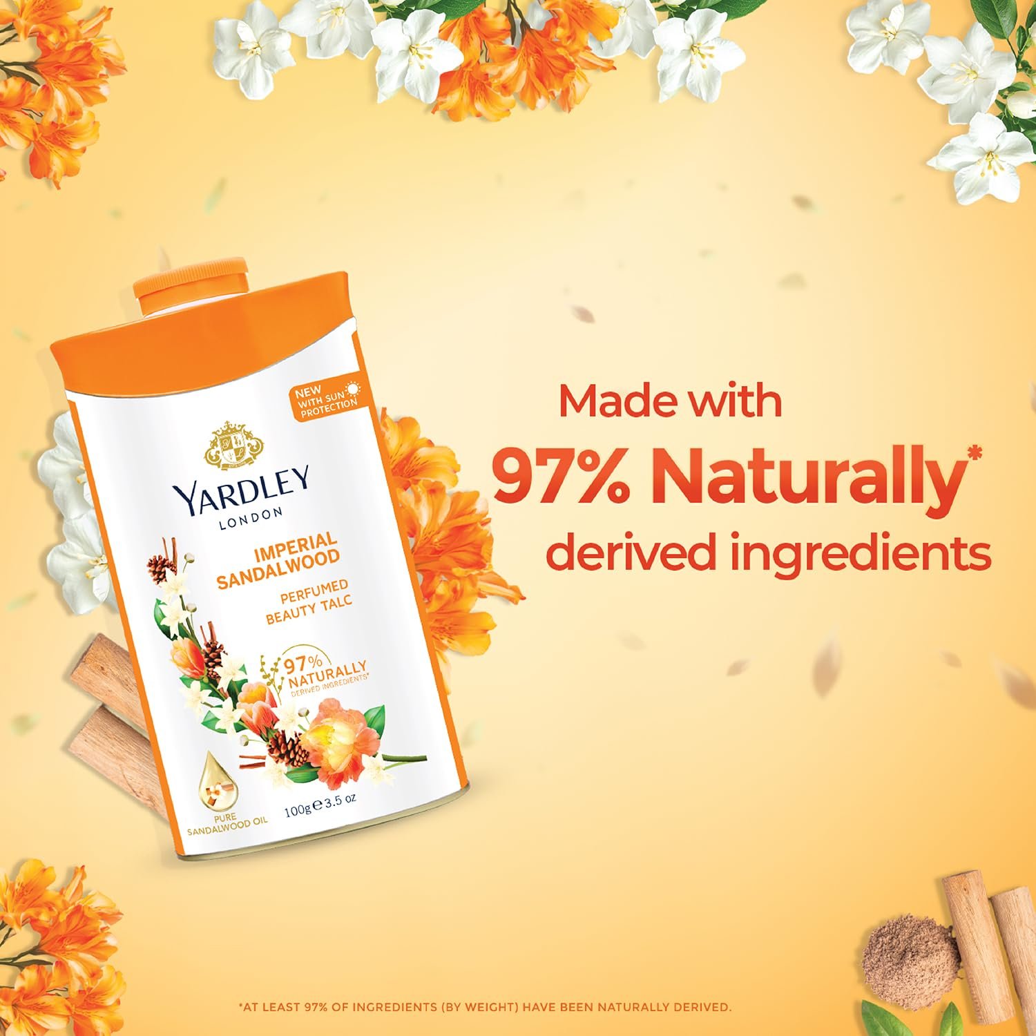 Experience the soothing and warm fragrance of Yardley London Imperial Sandal Talc. This 100g talcum powder combines the rich, calming aroma of sandalwood with a soft, powdery finish, keeping your skin fresh, dry, and delicately scented throughout the day. Perfect for daily use, it absorbs moisture, reduces friction, and leaves your skin feeling smooth, comfortable, and elegantly fragranced.